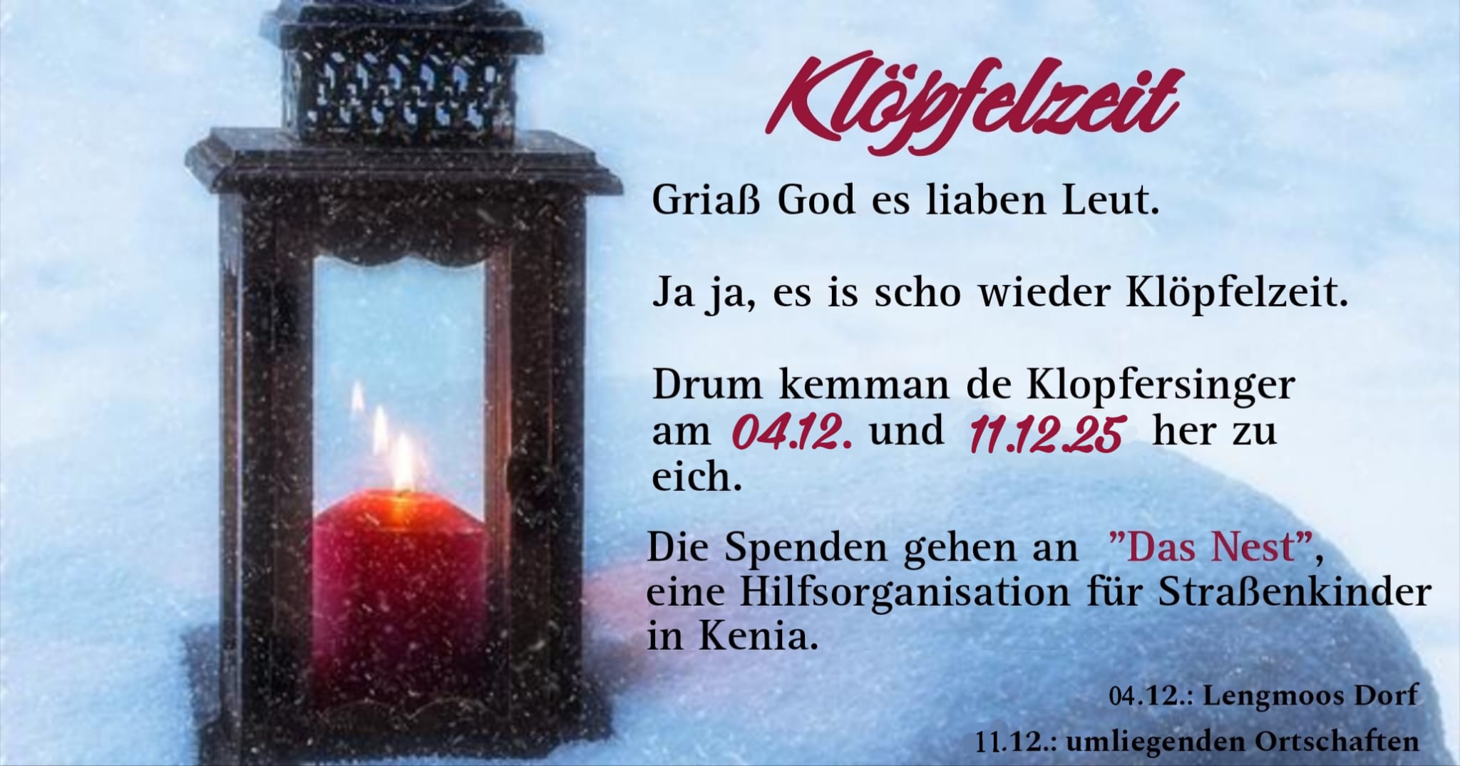 Do 11.12.2025 Trachtenverein Allmannsau-Lengmoos 18:00 Brotzeit für Klopfersinger - ca. bis 19:00 Uhr   "Flyer"
